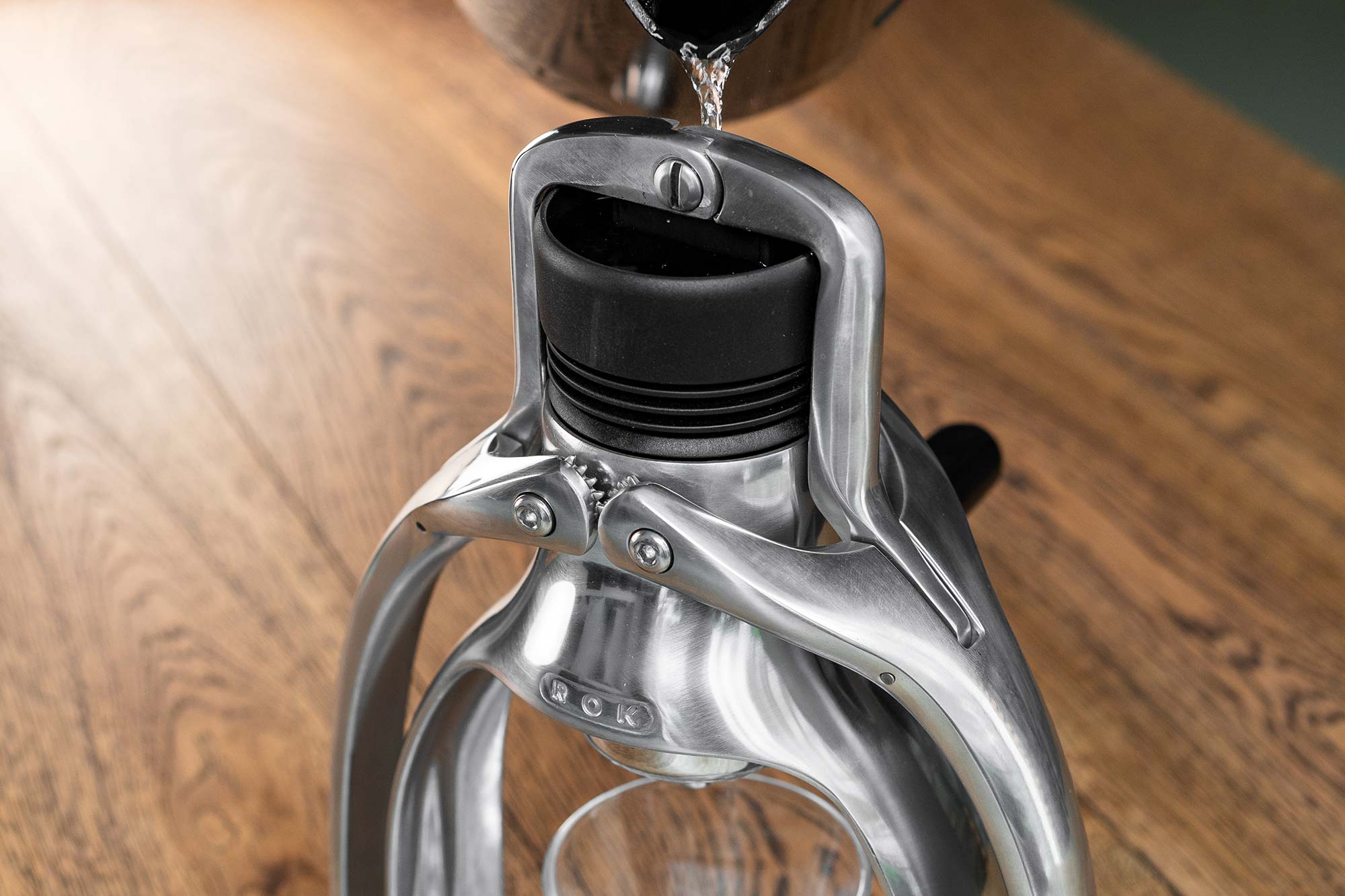 Whether kitchen boiled, or on a trekking stove, your hot water is cunningly delivered to the heat-insulating glass-composite pressure chamber by simply raising the arms. From here on, it's zero energy consumption – a manual espresso machine leaves electric pumps in a dystopian past.