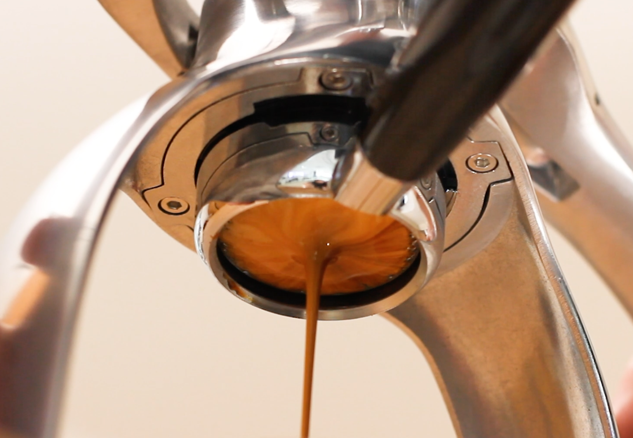 Pulling down the arms applies all the pressure required for true espresso. Expect to feel some resistance, the amount is up to you.